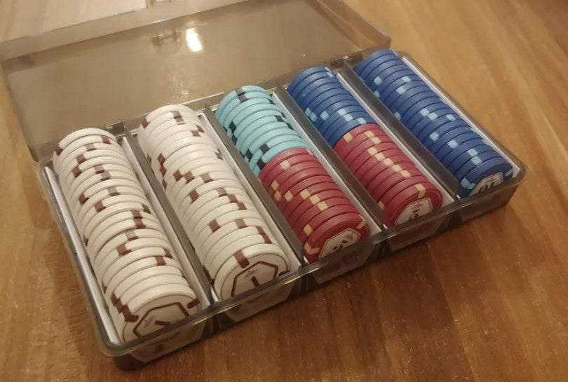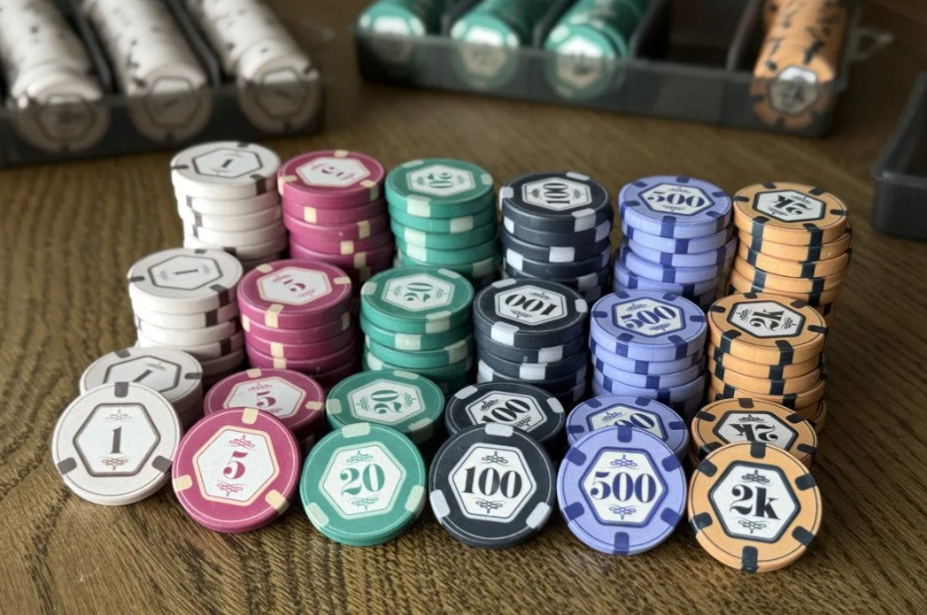 Escoge debajo la cantidad de fichas por cada denominación/valor, en múltiplos de 10 (esto es, precio de 0,37€ por ficha), y después ve a "Añadir a la cesta" abajo del todo.